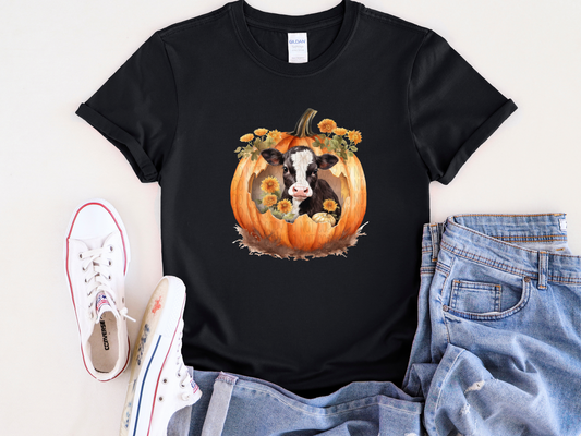 Black & White Cow in Pumpkin Tee
